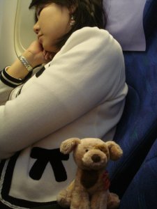 My sleeping cousin, Elaine. That girl can really sleep on planes! She gets on, settles down, and snoozes throughout…and only wakes for meals.