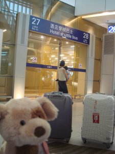 Yipee, we finally touched-down. πŸ™‚ Waiting for the hotel shuttle to take us to our hotel, Langham Place at Mongkok.