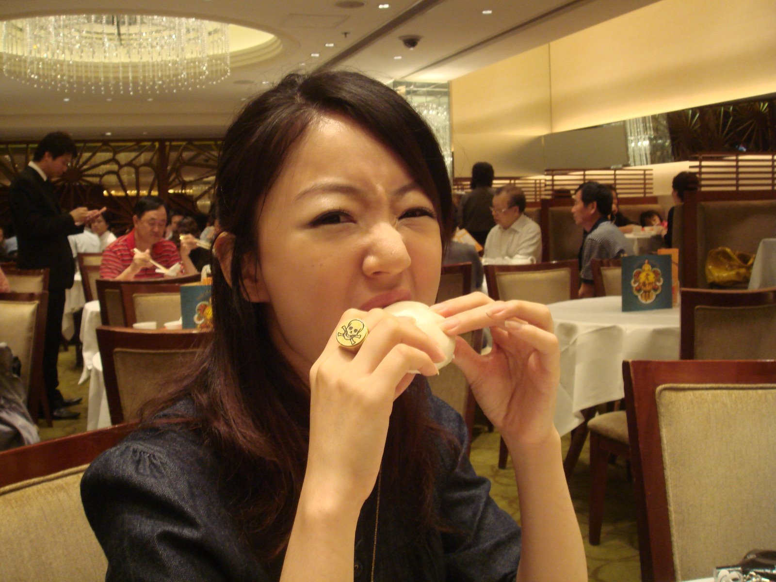 Attacking a super yummy egg yolk custard bun. mmmm….