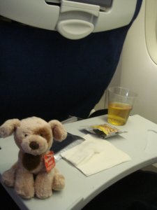 miniD enjoying his plane ride, his glass of apple juice and nuts. πŸ™‚