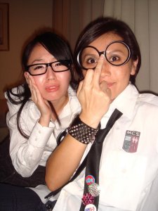 Point middle finger! Tsk Tsk….! That’s Elaine, the rebellious student and me, the ‘guai guai’ good girl. ha.