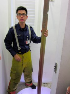 Do you remember a scene from ‘sex and the city’ when Samantha slides down the fire pole in the station and puts on a firefighter’s uniform? I think she was left standing stark naked when the emergency alarm ran off and all the firefighters were rushing to do their jobs and demanded she take off the uniform she was wearing. I was reminded of that scene when I saw this fire pole. Haha.