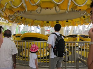 Still waiting in line…I totally expected a leisure ride on this one, but no! It zoomed around really fast scaring the life outta me!