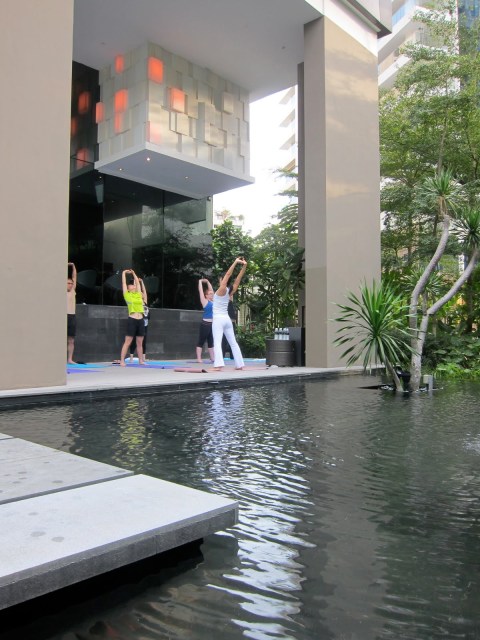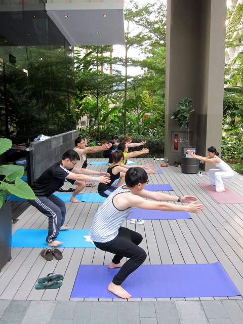 The boy and I got up bright and early on the 2nd day, headed to the gym, and then trooped down for yoga. I guess we were feeling slightly guilty for having eaten so much the day before!