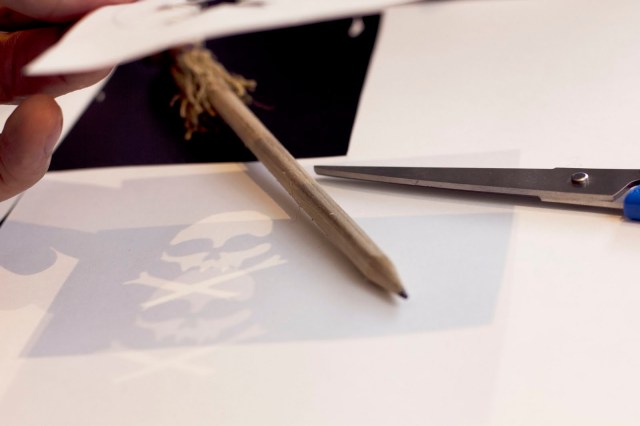 The boy took the job of decorating the cupcakes really seriously and cut stencils for it. It had to be skulls, no less.
