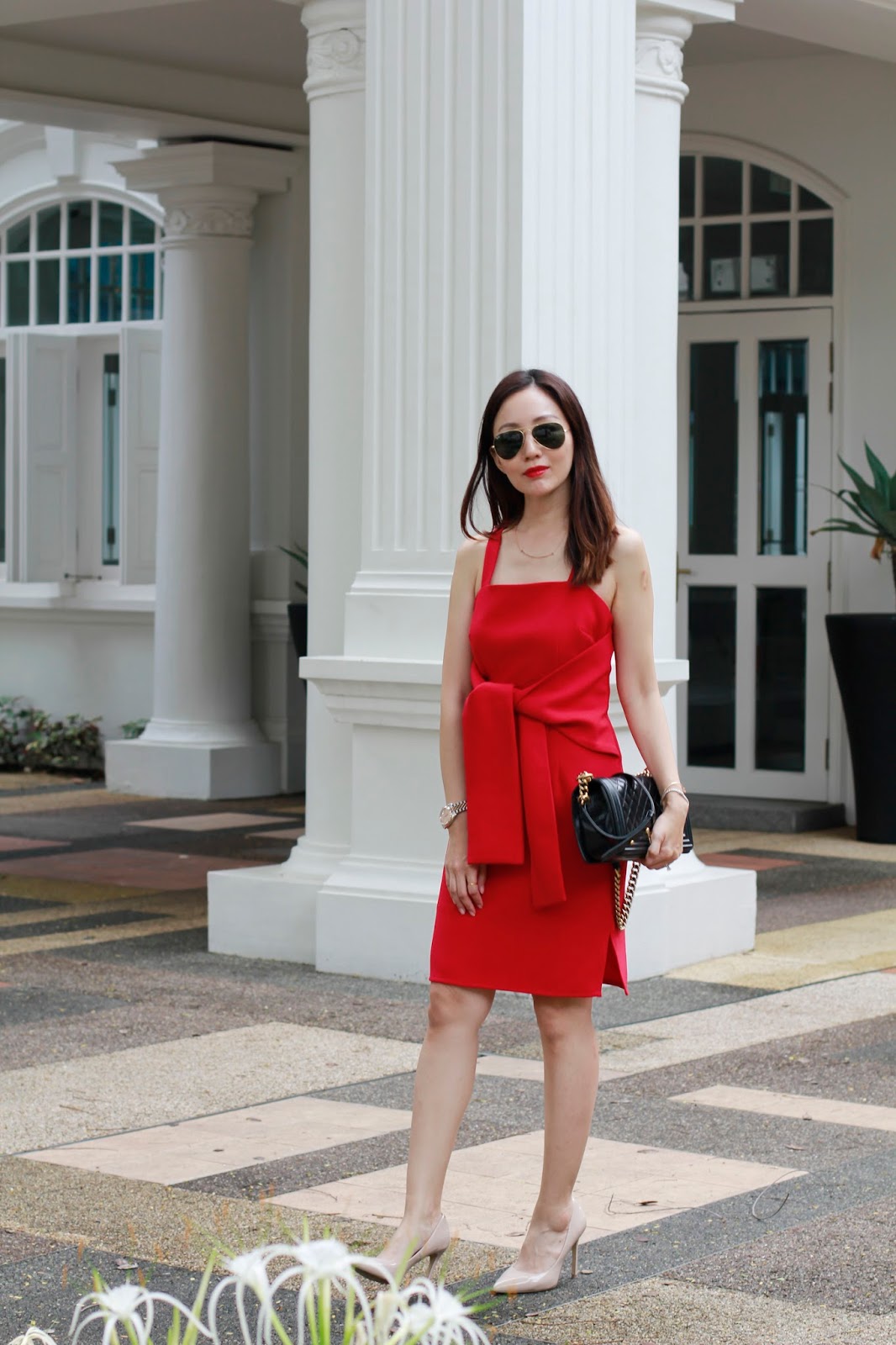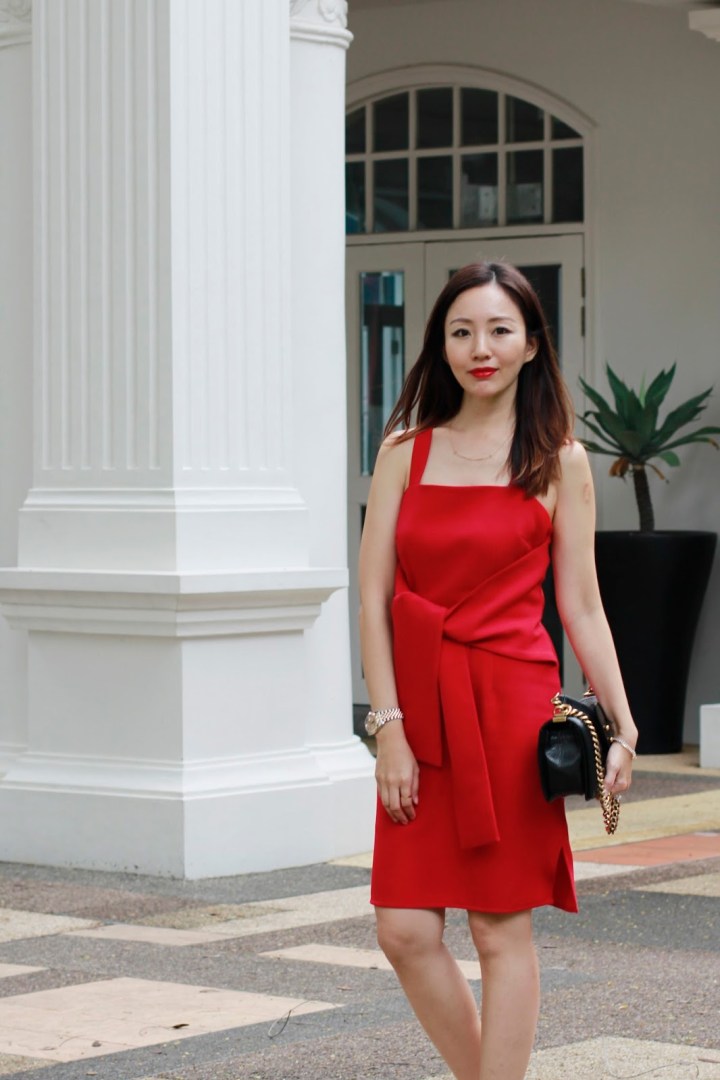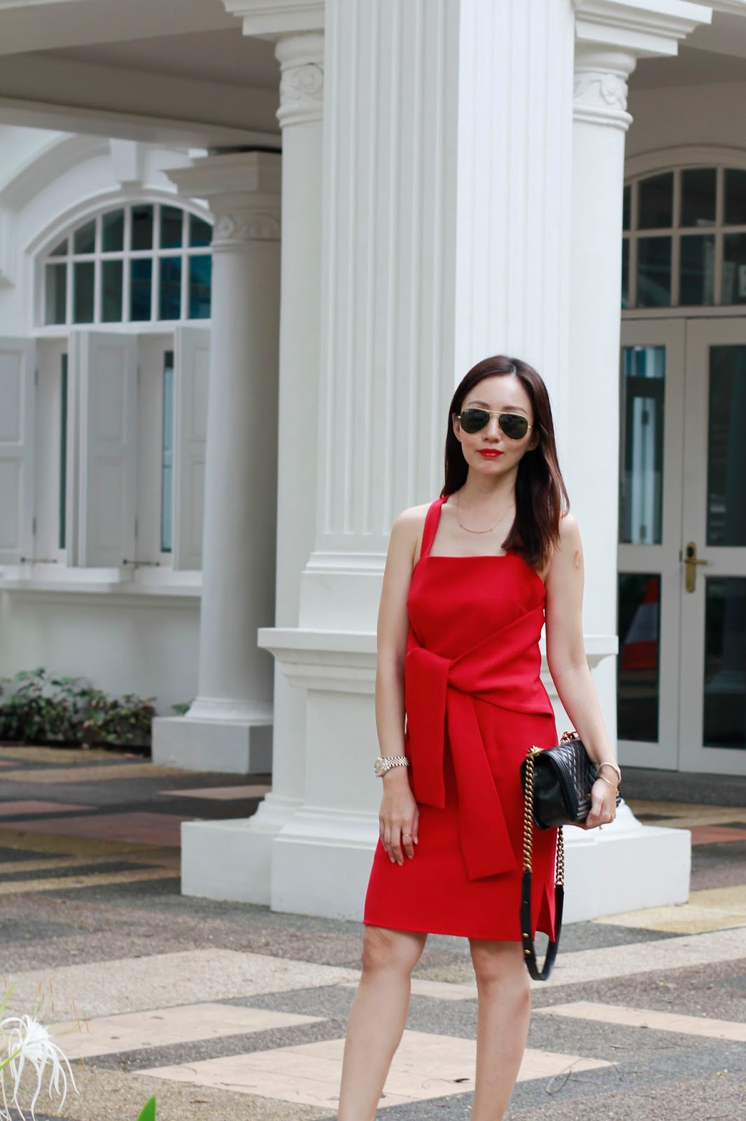 To fulfil our obligations to our both families, Jon and I went to a total of 8 houses all over Singapore in one day! We were so tired by the time we got home at the end of the day, and we were totally stuffed from eating 8 rounds of food. Thank goodness the dress that I picked for the day was very forgiving. The knot detail in the front completely hid the food tummy that I had. Haha! I contemplated pairing the dress with sneakers and it’s a good thing I went with easy to slip on heels instead. I can’t imagine how it’d have been like to put on and take off lace-up sneakers for 8 times in a day. I’m sure it’d not have been very fun!