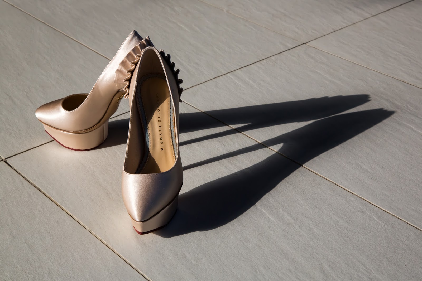I wore 3 mermaid cut gowns on the wedding day (yes, I really love the mermaid silhouette!) so I knew that I wanted really high heels to balance and elongate proportions. I went for stacked heels for the day and night and it was one of the best decisions that I made. Stacked heels really elevate you and are also relatively comfortable (depending on how long you stand in them). I went with the Paloma heels by Charlotte Olympia for the day and YSL Tribute in silver for night.