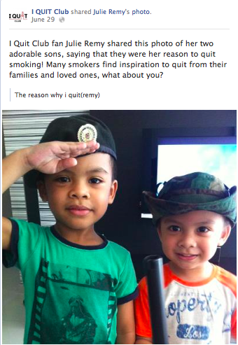 Already, the I Quit Club Facebook page has 20,000plus likes! Going on to the page, I found many personal stories of ex-smokers who have quit, reasons why they have decided to quit and also those who are on their quitting journey. It’s so nice to see everyone being really encouraging on the page!