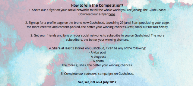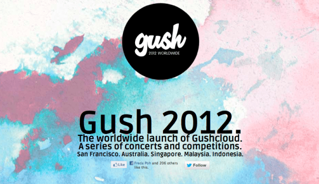 *Gush 2012 is the worldwide launch party of Gushcloud, happening in a series of concerts in San Francisco, Singapore and Malaysia.
