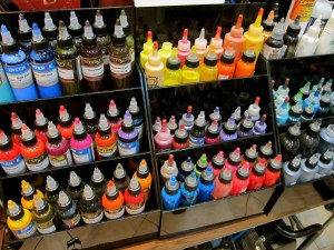 Colourful tattoo ink. I’ve always wanted to get one (tattoo), but never did cos’ I don’t know what to have! I remember that my sis wanted to ‘give’ me one for my 18th birthday. Haha. I wonder what I would have had if I had gone for it.