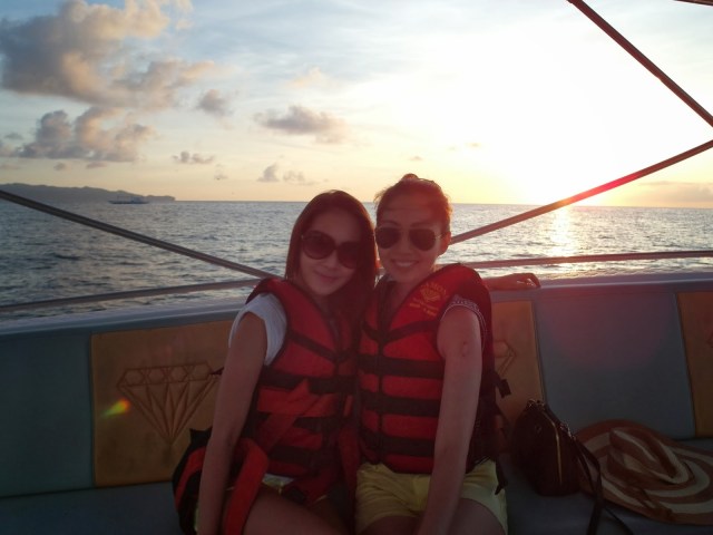 Definitely my favourite activity. It was so surreal and calming to be up so high and again I say, the view was magnificent. Although Kay Kay and I did have a somewhat physics discussion of what would happen if the parasail ropes snapped and we tumbled into the sea and we were worried about how we were going to land at first because we had no clue and were slightly scared. We eventually found out that we landed really gracefully with the speedboat reeling our line in slowly till our feet touched the boat. Phew! Oh, and you have to do this at sunset! It’s makes the whole experience even more amazing with the view.