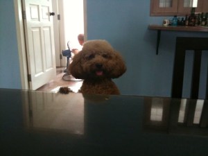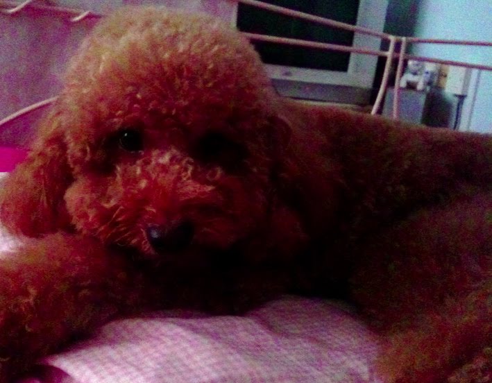 I was tinkling on my piano whilst it was raining cats and dogs out with claps of thunder, when Domo ran over to me and tried to squeeze himself under the piano, beside my leg. Poor boy was afraid of the lightning and thunder! I ended up having to carry him whilst he nestled comfortably on my lap….and just like that, I carried on tinkling. My dad says that Domo is my only audience at home. Haha. -_-