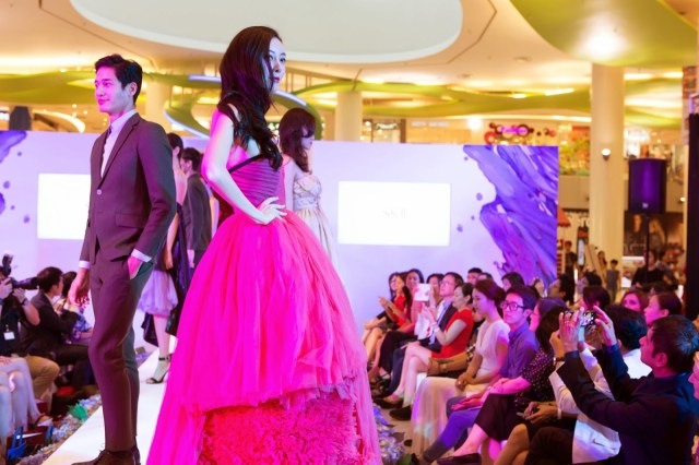 Tricia, Sophia and I at the entrance of the  Change Destiny Garden. With a wonderful marriage of beauty, art and fashion, we were given a visual treat at the launch party with a fashion runway show showcasing creations inspired by the designs on the new Facial Treatment essence bottles by LASALLE College of the arts graduates. With another partnership between SK-II and renowned UK illustrator, Melissa Bailey, Melissa drew inspiration from Po-Chih Huang’s digital designs and transformed them into hand-crafted fashion illustrations. The graduates from LASALLE in turn brought Melissa’s fashion illustrations to live by transforming the outfits from paper to real and showcased them during the runway show. This was the stunning results from the beautiful partnerships.