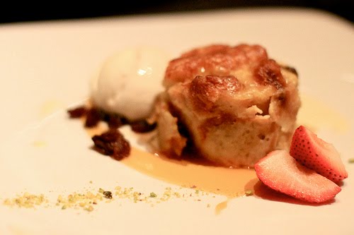 Claymore Bread and Butter Pudding with Vanilla and Toffee Sauce with Cinnamon Ice Cream