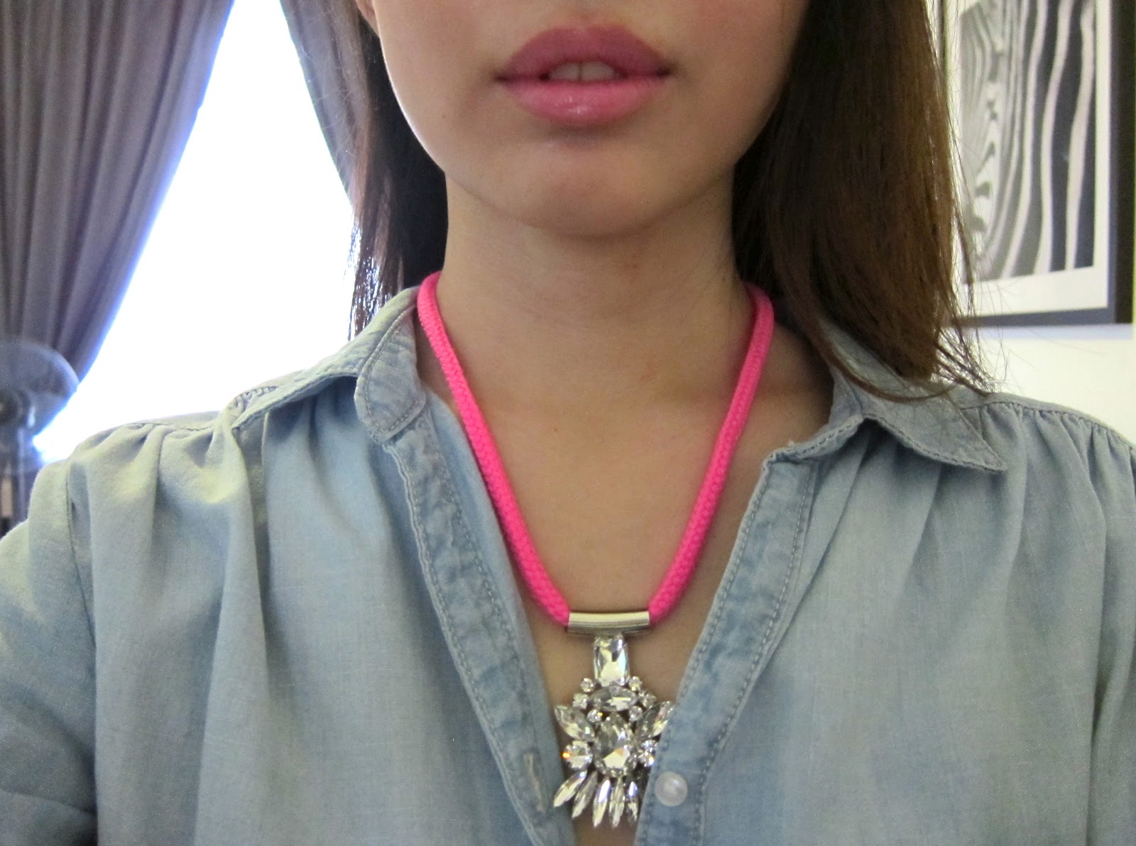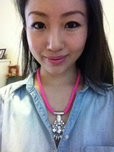 I was really happy that the Noir necklace I ordered arrived. Shopbop is really quick. They deliver in around 3 working days? Of course, free international shipping is absolutely awesome. Took it out on our dinner date with my pink heels and judging from the first photo, Domo clearly approves of my outfit. Haha.