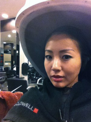 Wash with Keratin shampoo and leave to set for 10-15 mins. Ed, the hairstylist assistant propped my head up on the sink with a ‘pillow’ so it wasn’t uncomfortable to lie at the sink for so long. I have to mention that the head massage after to wash off the shampoo was awesome!