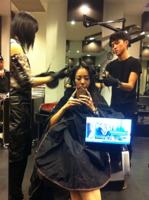 Meet Serene, the stylist behind my now gorgeous locks. I’m usually very fussy about hair cuts and get really worried when I work with new stylists, but I have to say that I’m super happy with the results post treatment and cut. 🙂 Thank you Serene!! Did I also mention that Serene and Ed stayed almost 2 hours past closing time just to work on my hair? What superb service Chez Vous has got. I felt so so bad having them stay late.