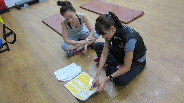 Here’s Nani, my Personal Trainer going through the questionnaire with me and understanding my current lifestyle, health, fitness goals, etc. She also talked me through what to expect from the trainings and the various type of fitness classes available.