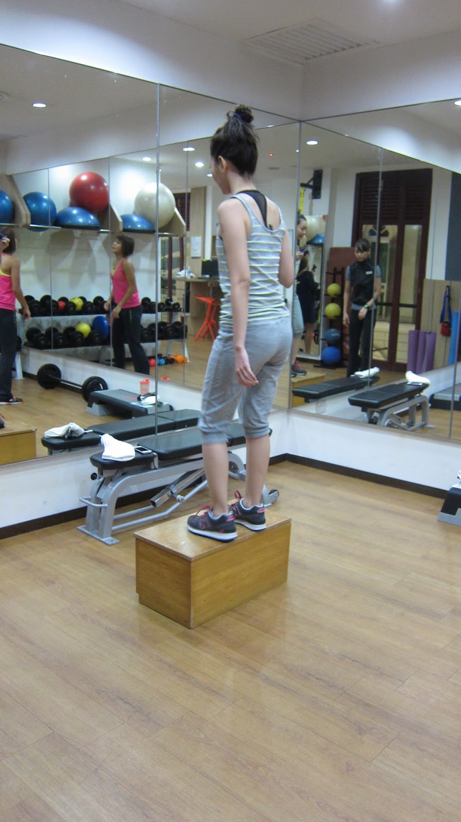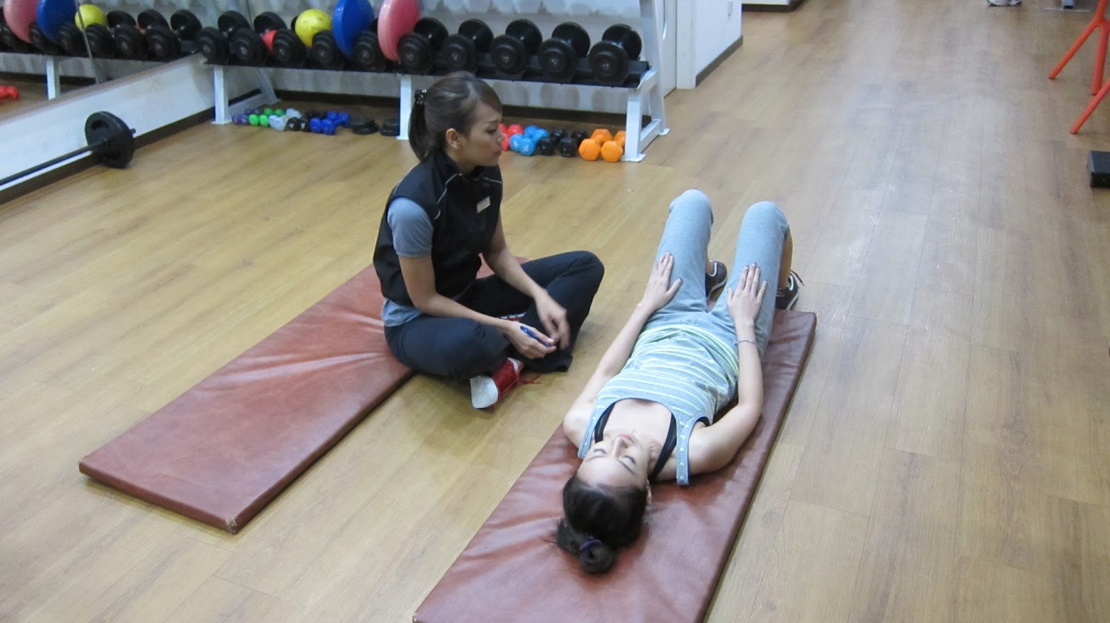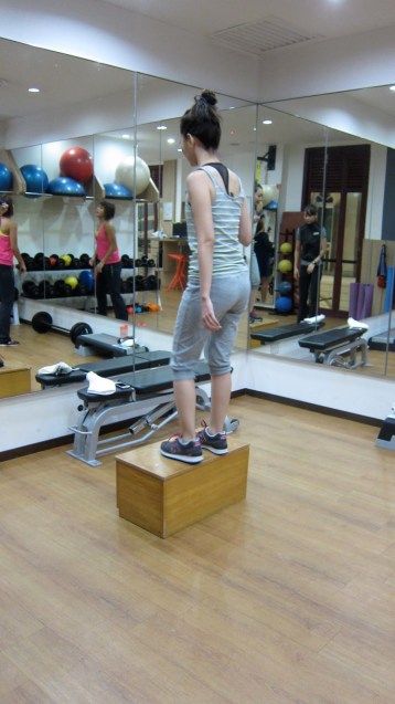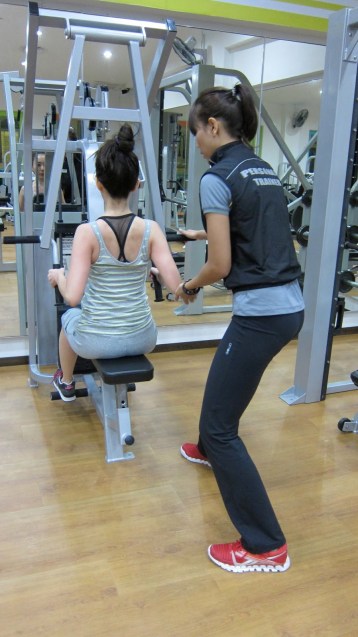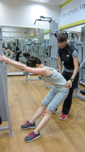 I’ve since attended 4 personal training classes and 1 fitness class from this 1st fitness analysis/training session. Below are more pictures of what we usually do in a typical PT session. 20 mins run on the treadmill to start for warm-up, followed by weights and static exercises with lots of stretching in between. Nani has been completely awesome; encouraging and always there to lead and guide.