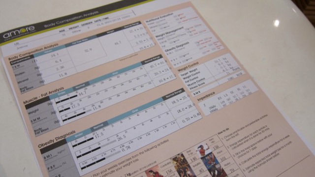 Taking my weight and body composition (fat vs muscle) analysis. I was almost afraid to step on this machine for the fat analysis!
