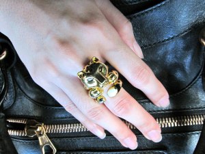 This is my newest ring. I love of course, that it’s a leopard (strange obsession I’ve got with leopards. The boy thinks I’m going to be one of those aunties sporting super loud and gaudy looking leopard printed clothes next time! -_-), and that it comes in 3 parts – tail, paws and head.