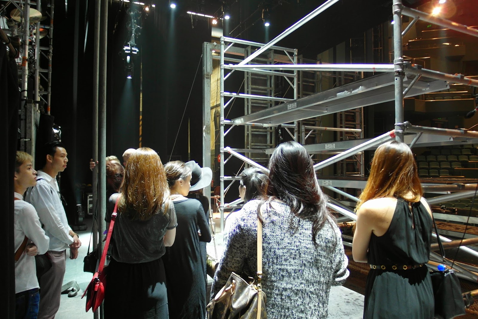 Here’s us after the show, having a mini tour back stage. The stage manager told us that this is by far the most dangerous sets that he has worked on with the moving of the scaffolding throughout the show and water making it all slippery and dangerous. Kudos to the actors for all that they need to do to put on a good performance!