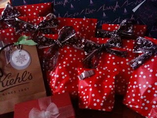 Ta da! Cute sleepwear, more underwear (which she announced that she was having on the exact same pair I gave her!! What are the odds?!), and a Calvin Klein wristlet.