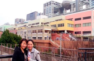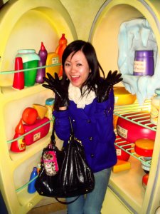 Angelia and I waiting for Ceci’s sister to pick us. We were really freezing, but still trying to capture the glitzy vending machines behind us. Without much success…