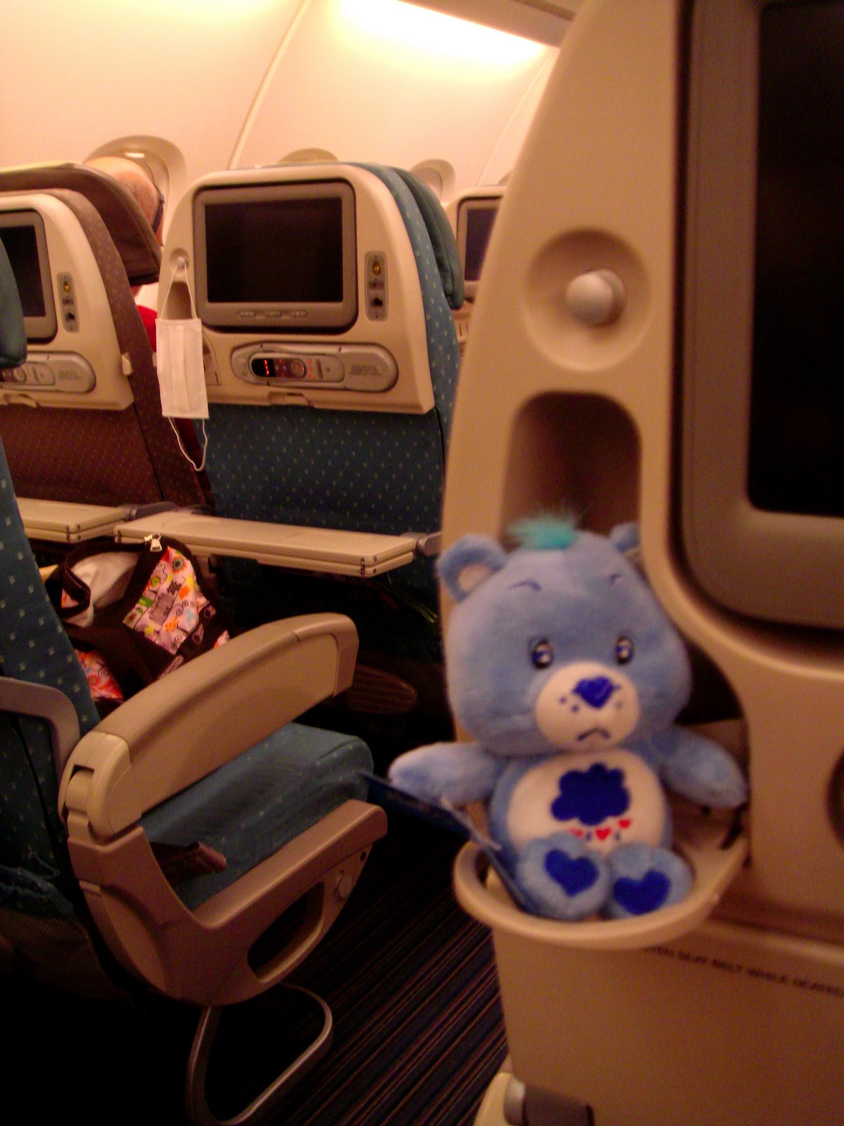 Introducing Bluey Bear on the plane. He was given to me by someone special (of course!) to take on my trip. The constant frown on Bluey’s face was how much he was missing me back at home. Aww….. 🙂