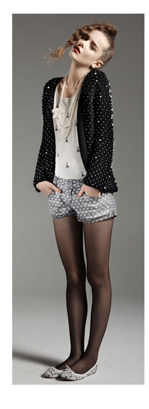 “Wear a plain slightly over-sized tee over leggings/jean leggings and pair with a short cropped jacket/cardigan. Tees should end above mid-thigh and jacket/cardigan should crop at the waist. This style is great to even out proportions!”